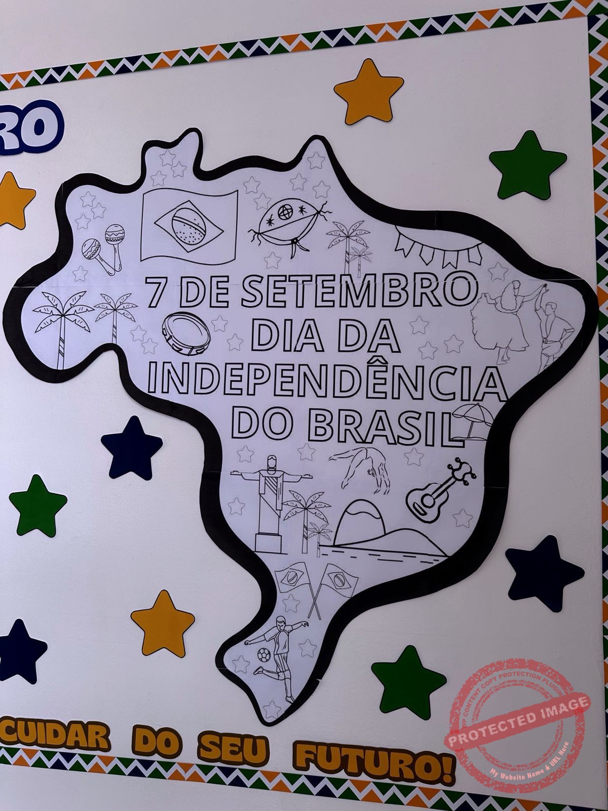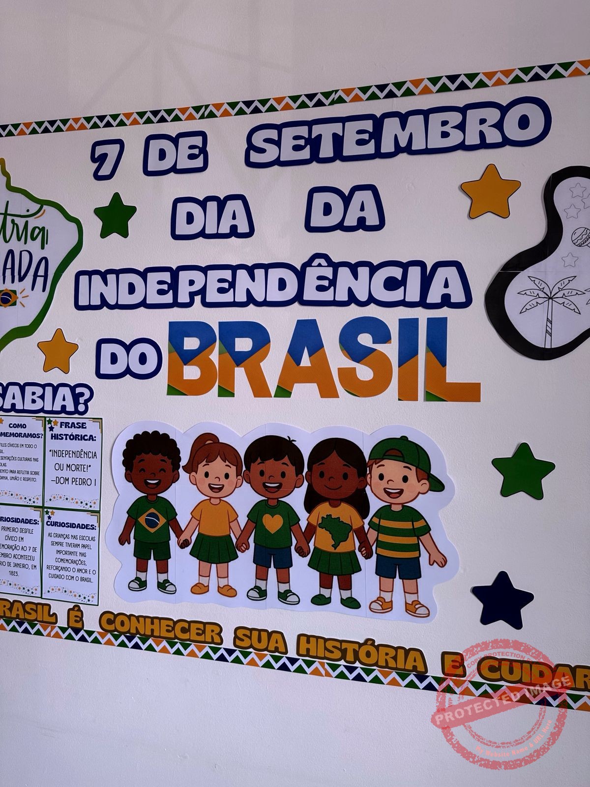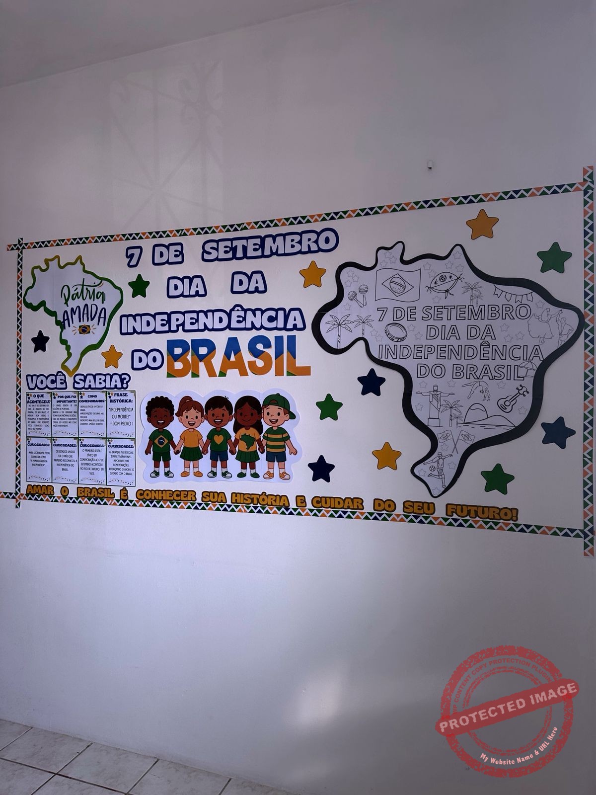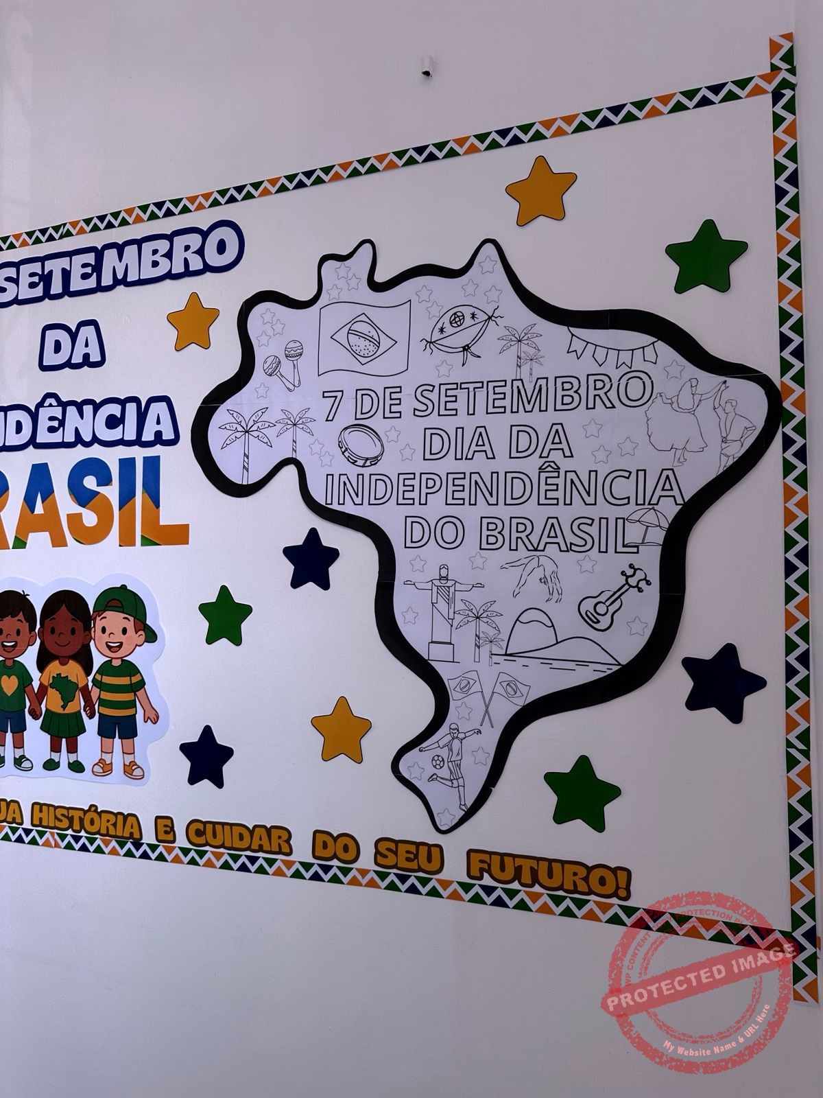 ✅Painel decorativo e informativo (2,18m x 1,05m) com pôster central, frases, bordas, estrelas e espaço temático.