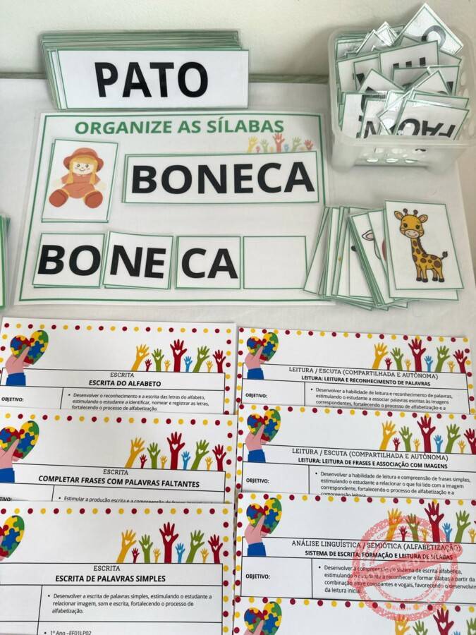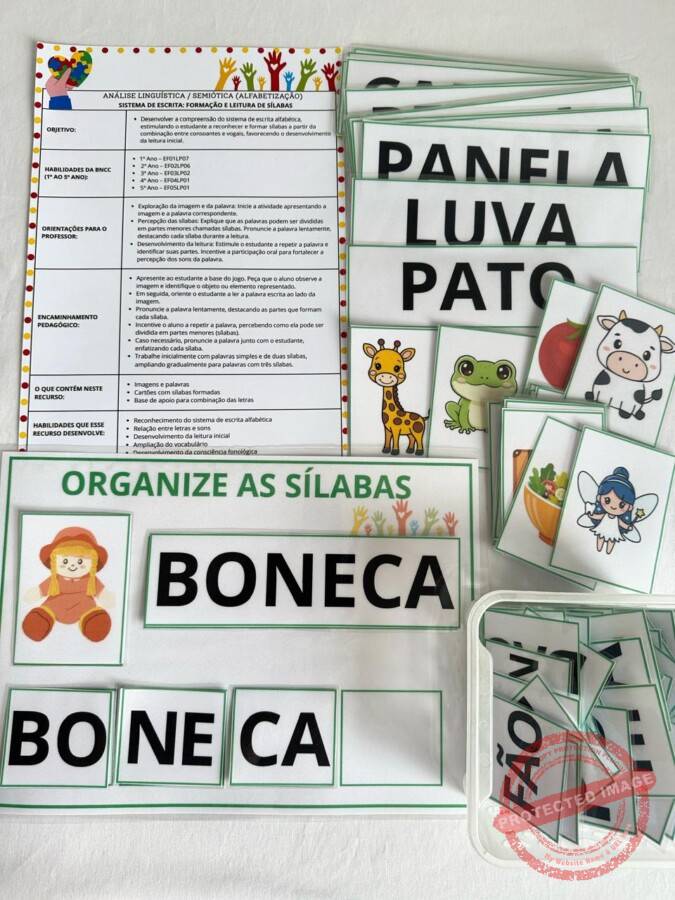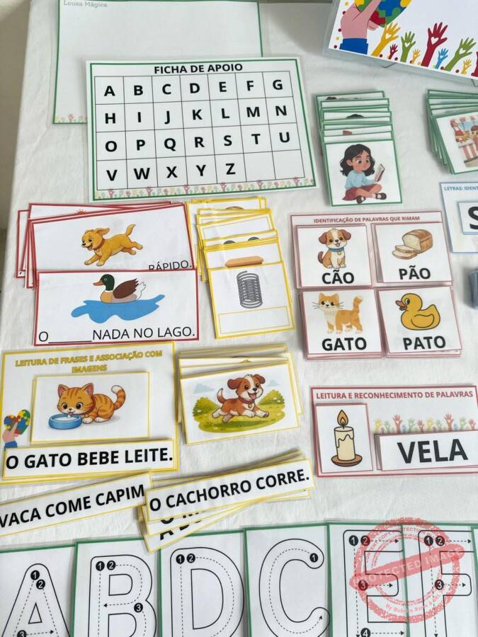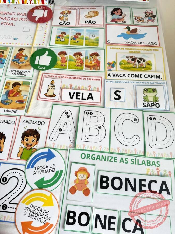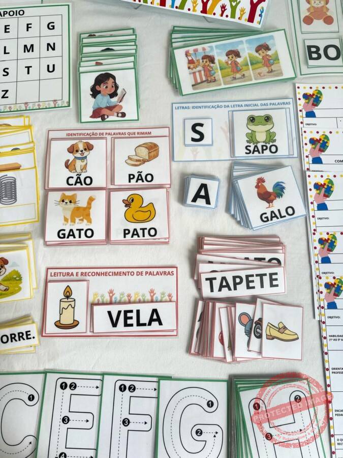 Um kit completo com recursos manipulativos, organizados por eixos da BNCC, para trabalhar alfabetização de forma visual, prática e significativa.