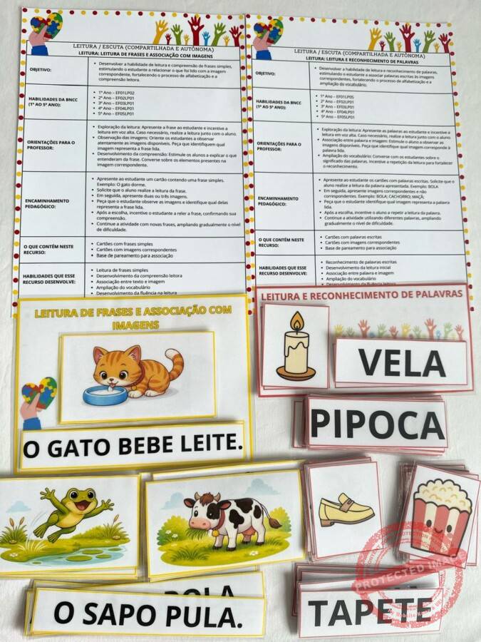 LEITURA / ESCUTA ✅Reconhecimento de palavras(1 base, 23 imagens, 23 palavras) ✅Leitura de frases + associação com imagens(1 base, 9 imagens, 9 frases)