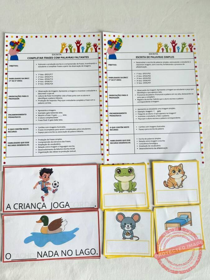 ESCRITA ✅Completar frases com palavras faltantes (9 imagens/frases) ✅Escrita de palavras simples (18 imagens + espaço para escrita) ✅Escrita do alfabeto